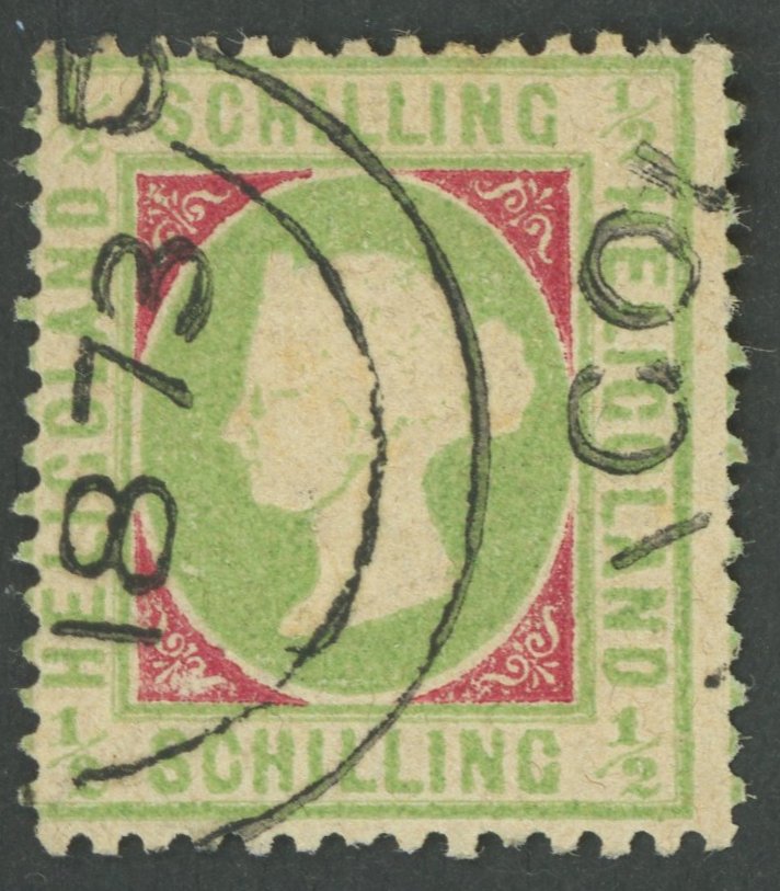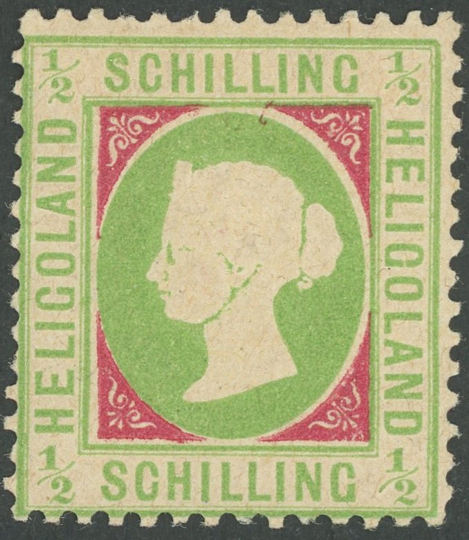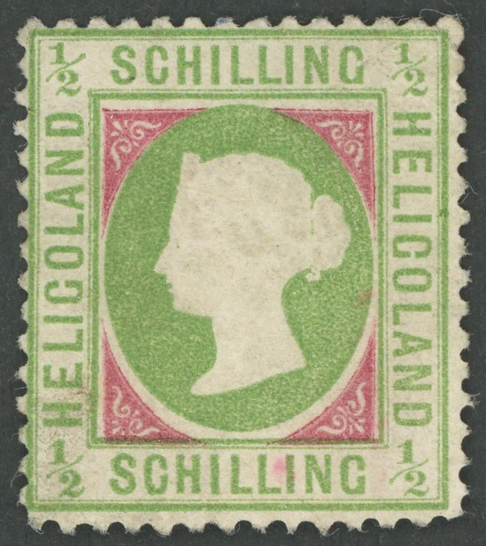 HELIGOLAND. 1873, ½ S. bluish green / dark carmine, rest of hinge, superb, Michel 200.- (Image)