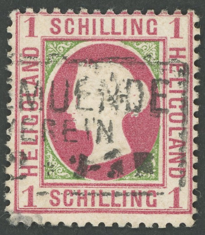 HELIGOLAND. 1871, 1 S. carmine / yellowish green, three lines frame cancel GEESTEMÜNDE customs union, as usual perforated superb, expertized among others W. Engel, Michel 380.- (Image)