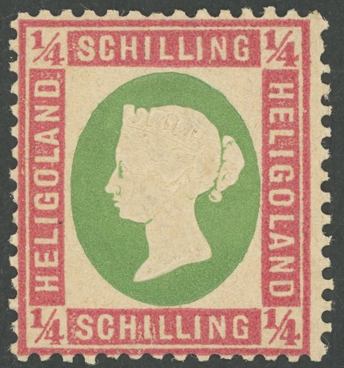HELIGOLAND. 1873, ¼ S. lilac-rose / gray green, mint never hinged, as usual perforated superb, Michel 90.- (Image)