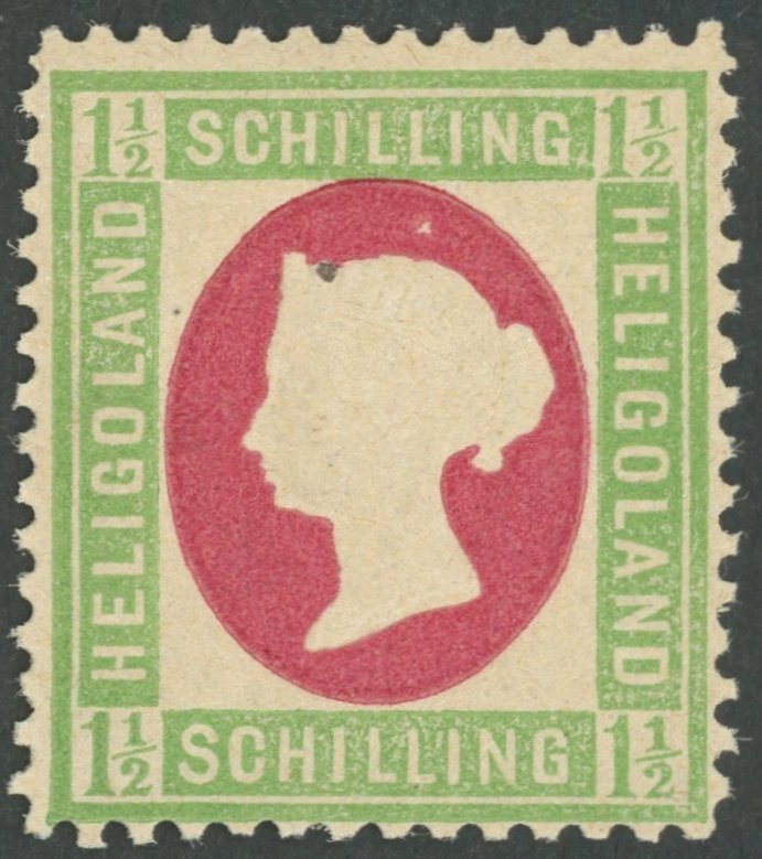 HELIGOLAND. 1873, 1 ½ S. light green / carmine, mint never hinged, natural paper grain, superb, Michel 150.- (Image)