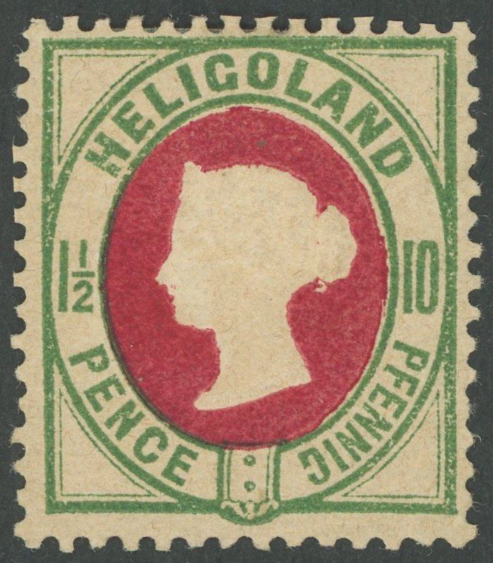 HELIGOLAND. 1875, 10 Pf. dark green / dark purple carmine, as usual perforated superb, expertized Lemberger, Michel 70.- (Image)