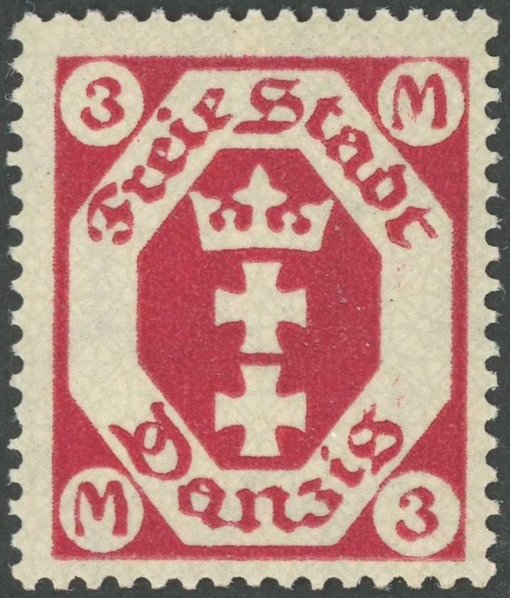 FREE CITY GDANSK. 1922, 3 M. carmine red, mint never hinged, superb, photo expertize Söcknick, Michel 300.- (Image)