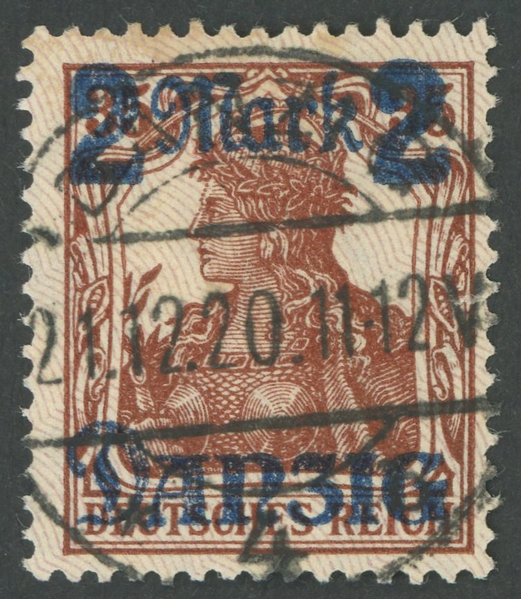 FREE CITY GDANSK. 1920, 2 M. on 35 Pf., purplish gray burelage, tips downward, security post cancel, superb, abridged certificate Tworek, Michel 330.-