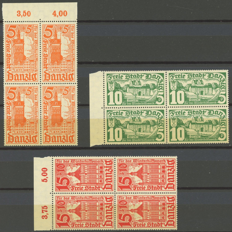 FREE CITY GDANSK. 1936, buildings in blocks of four from the margin, mint never hinged, superb (Image)