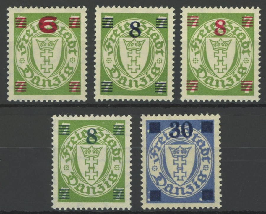 FREE CITY GDANSK. 1935, postal stamps, mint never hinged, 8 superb items, Michel 210.- (Image)