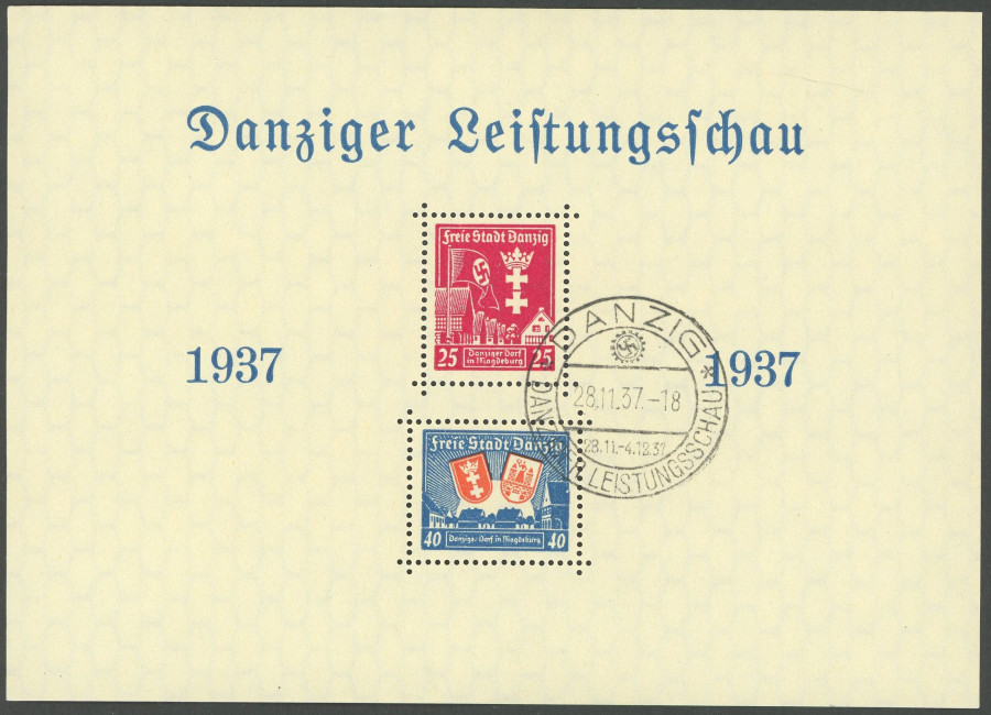 FREE CITY GDANSK. 1937, souvenir sheet exhibition, first day special cancel, superb (Image)