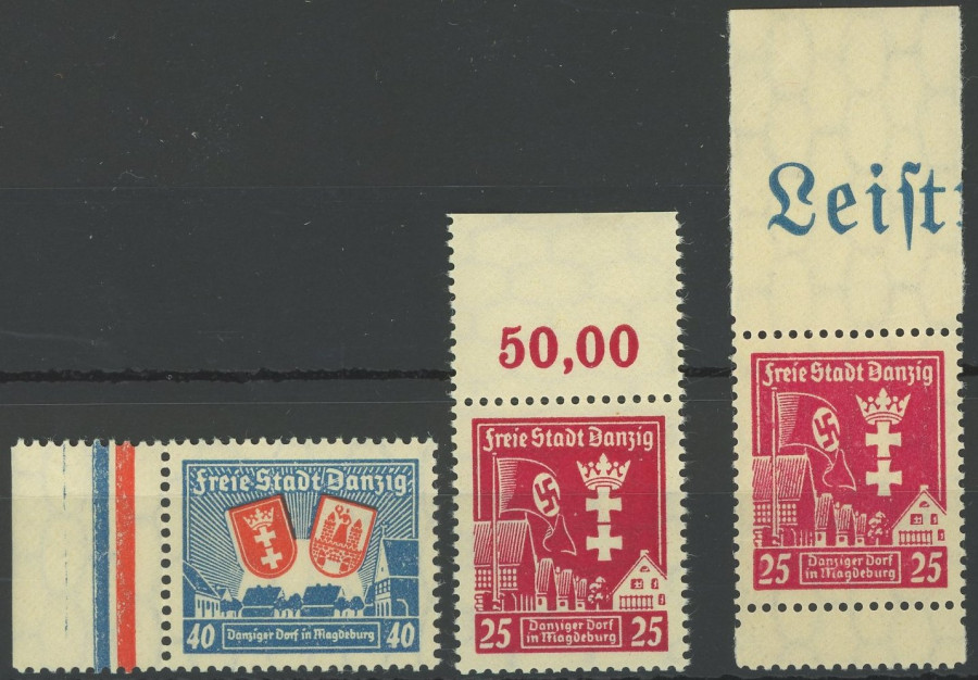 FREE CITY GDANSK. 1937, souvenir sheet pair DAPOSTA and exhibition, each with special cancel, 3 superb souvenir sheets, Michel 160.-