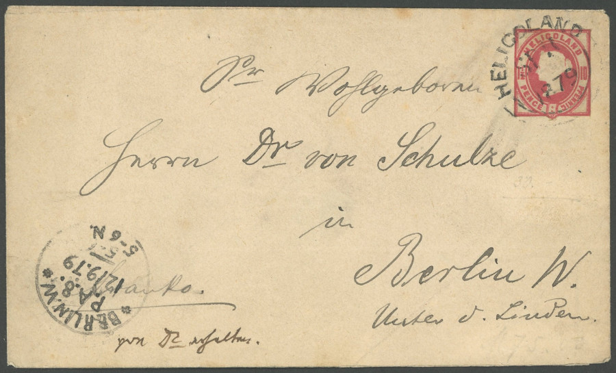 HELIGOLAND POSTAL STATIONERIES. 1879, 10 Pf. red on cover to Berlin, very fine, Michel 300.- (Image)