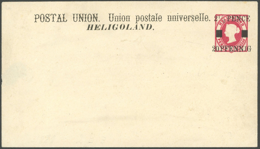 HELIGOLAND POSTAL STATIONERIES. 1879, 20 Pf. on 10 Pf. red, pfennigs with shorter I, cover unused, very fine (on the back defects), Michel 150.- (Image)