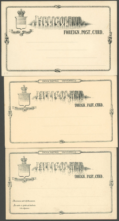 HELIGOLAND POSTAL STATIONERIES. 1878 / 80, 3 unused cards, superb, Michel 84.50 (Image)