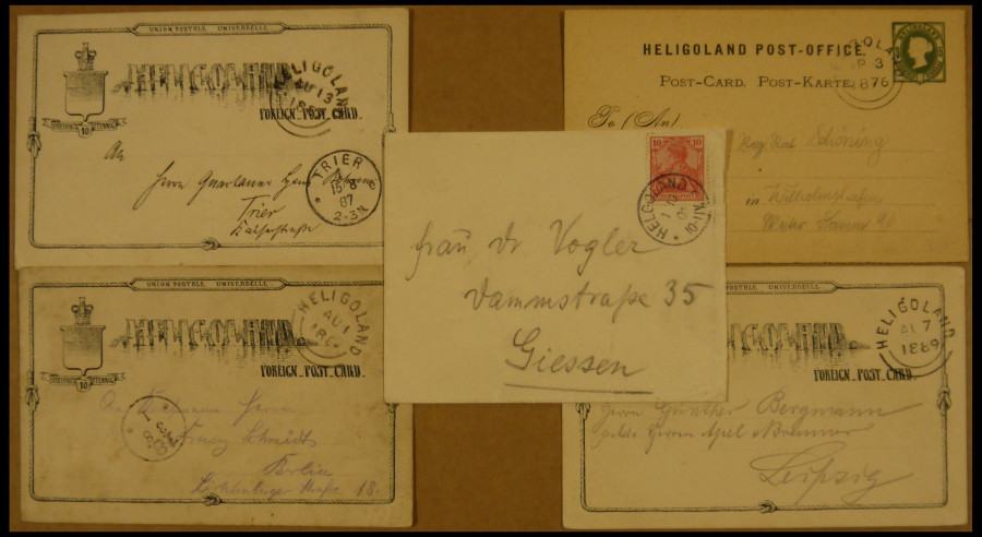 HELIGOLAND POSTAL STATIONERIES. 1881-90, 10 Pf. gray black, 5 various cards with different cancel, superb (Image)
