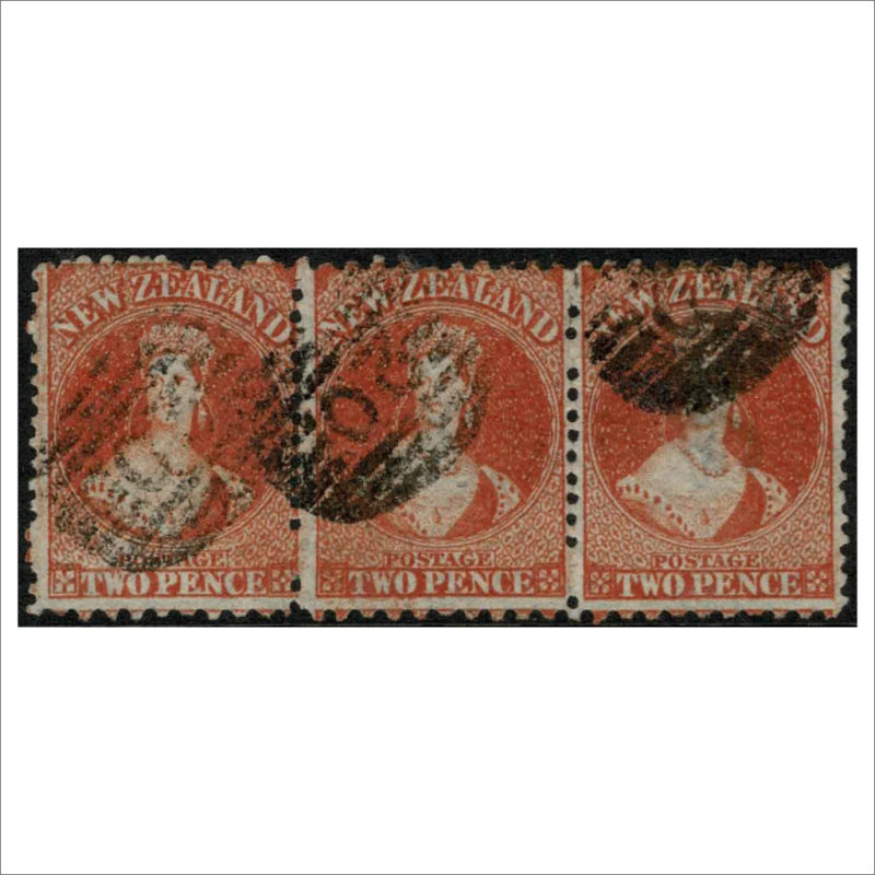 Orange-Vermilion P10x12 1/2 SG 130/CP A2r Horizontal Strip of 3 Good to Very Good Used with Obliterator ‘20’ (Greymouth) cancels. (3) (Image)