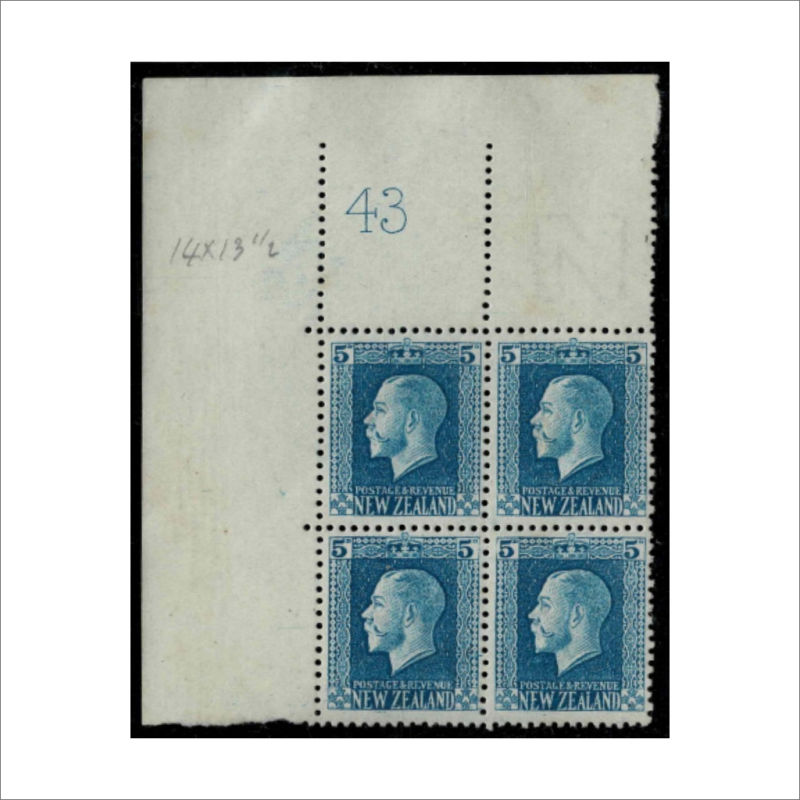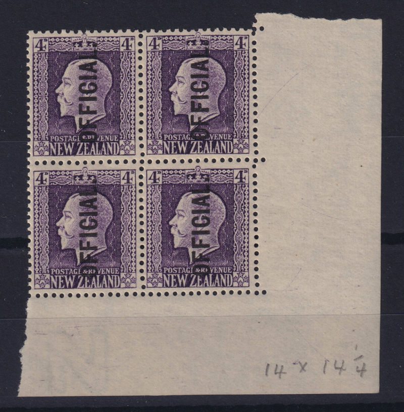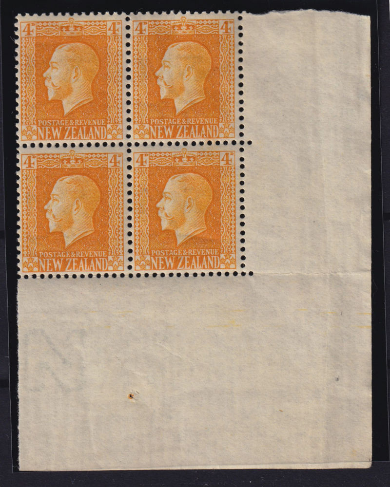 1/2 Bottom Right Corner Block of 4 Unhinged. Light hinge in selvedge Fine Positional Block (4) (Image)