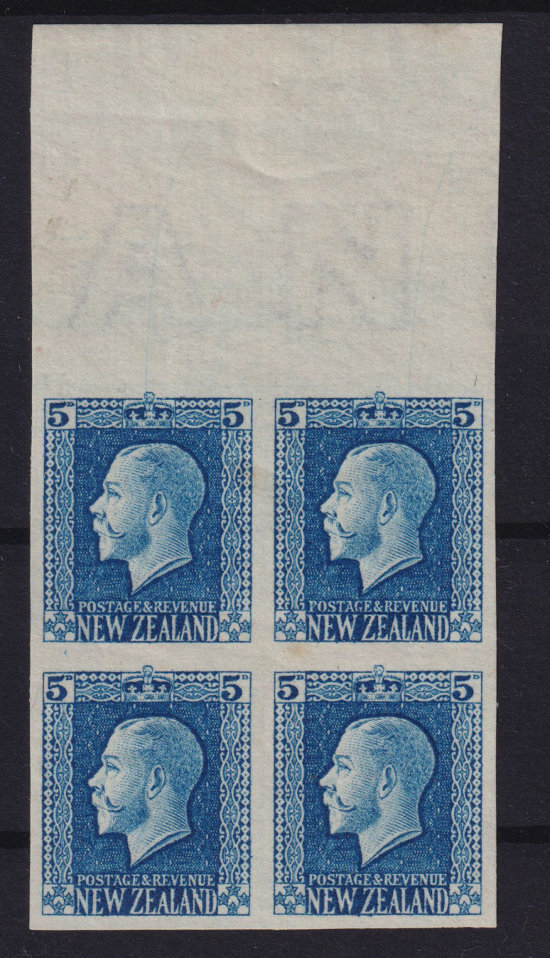 424a/CP K7a(y) Top Selvedge Imperf Block of 4 Unhinged with 2 faint age spots. Has hinge on the top selvedge. Scarce. CP Cat $3200 (4) (Image)