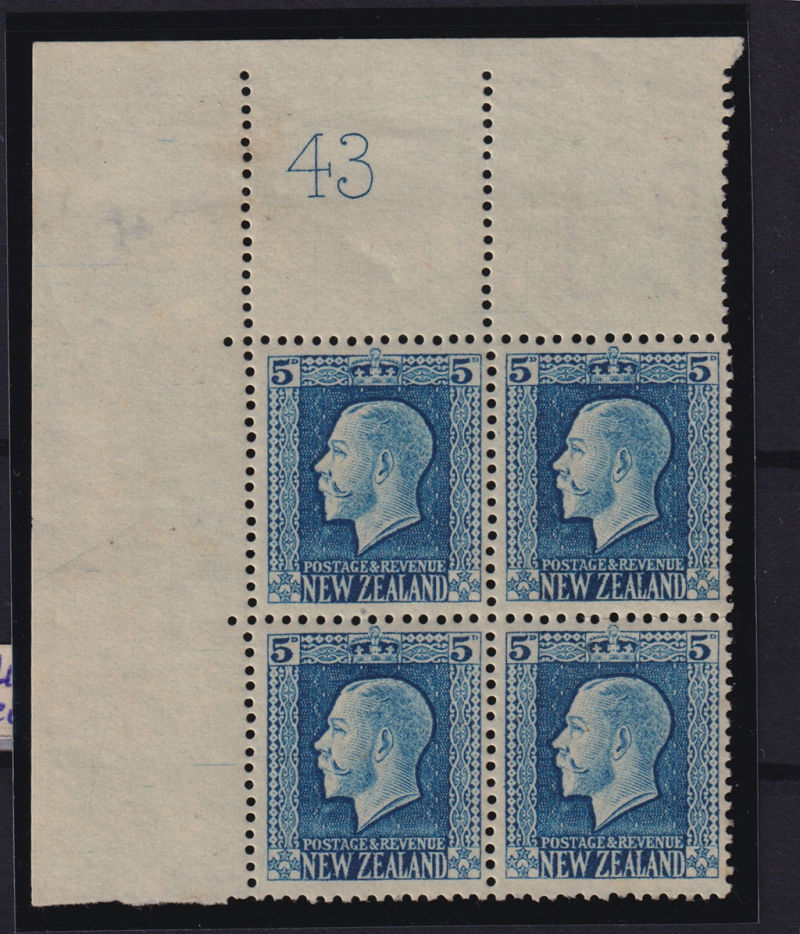 1/2 Plate 43 Block of 4 with a hinge in the selvedge. CP Cat $1600 (4) (Image)