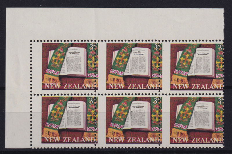Bible SG 883 in Top Left Corner Block of 6 with Grossly Misplaced Design Unhinged (6) (Image)
