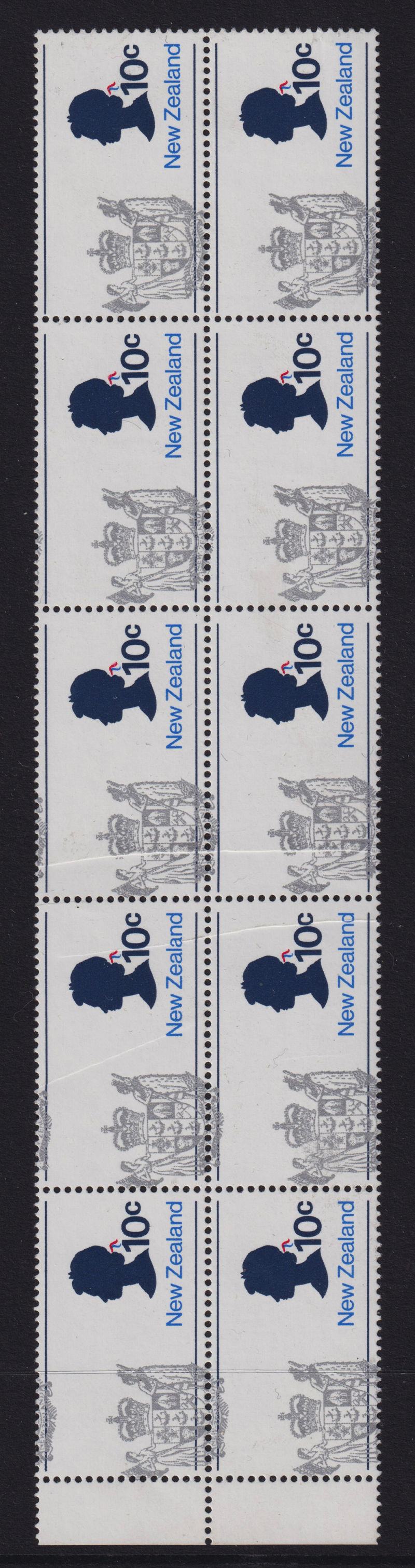Watermark) Selvedge Block of 10 with the Silver Arms Grossly Misplaced to the base caused by a pre-printing paper crease. Fine Error Block Unhinged (10) (Image)