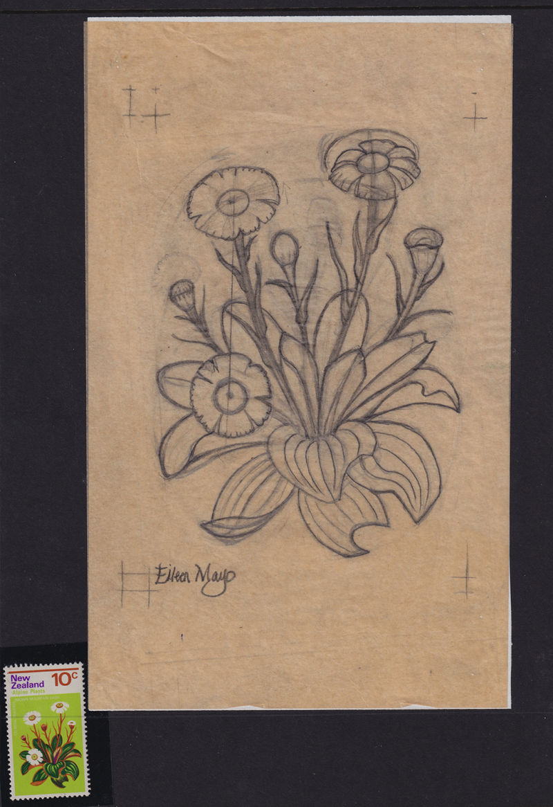 562 P image1972 6c Alpine Plants Eileen Mayo 14x22cm Pencil Drawing on tracing paper Signed (1) (Image)