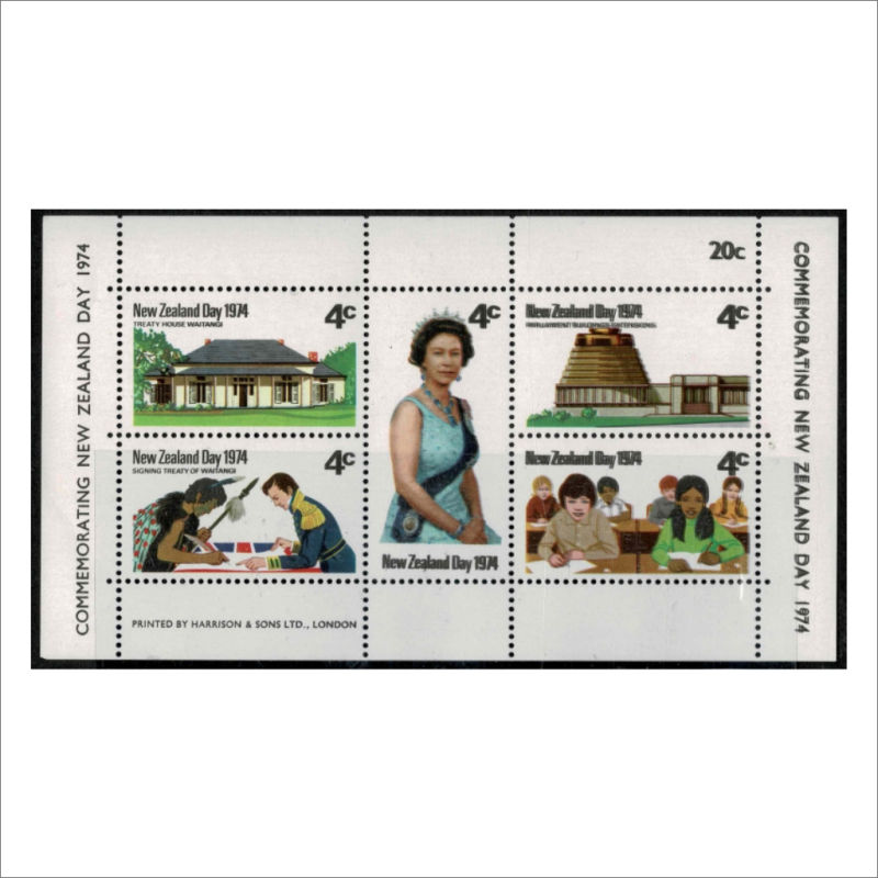 563 ** image1974 NZ Day Min Sheet CP SM182-6(y) Black Colour Doubled Fine Unhinged CP Cat $1250 (1) (Image)