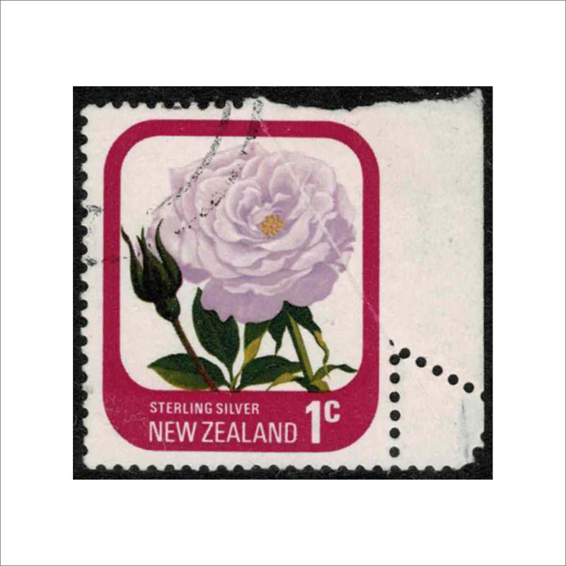 564 U image1975 1c Rose with a Part Imperforate single affecting the top half of the stamp and most on the right caused by a diagonal paper crease Used. Fine & Unusual (1) (Image)