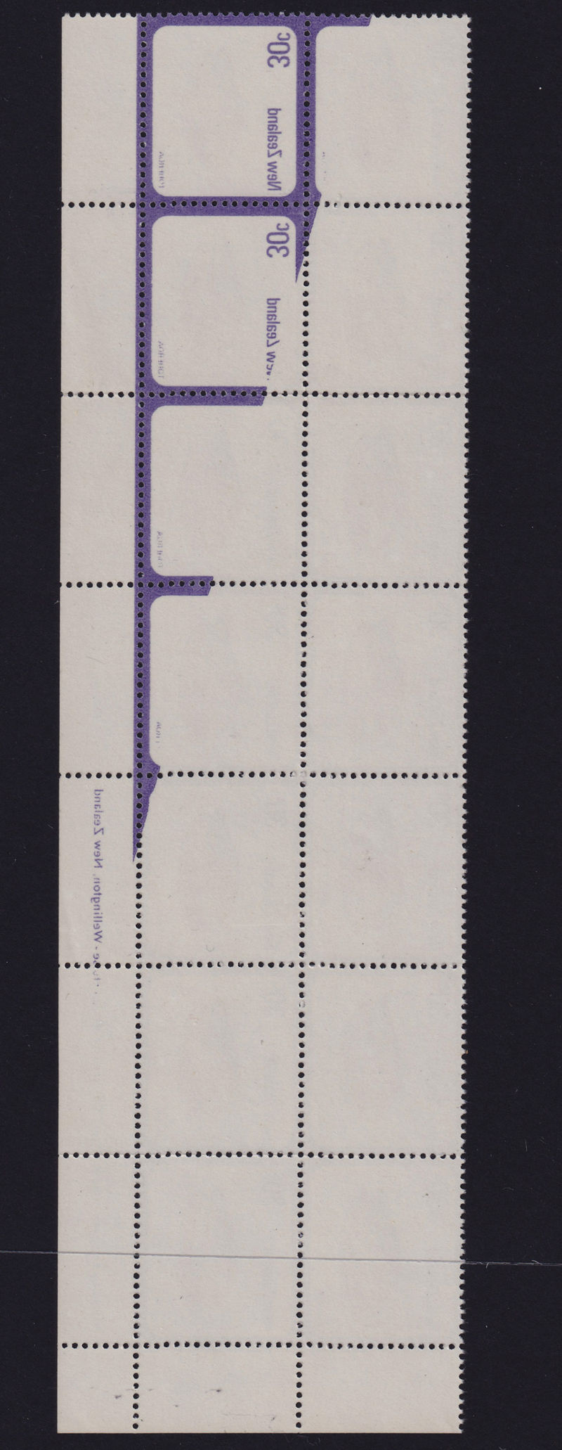 569 ** image1978 30c Toheroa Shell CP PA16a(z) Imprint Block of 14 with Violet Colour Offset Complete on 1 stamp, nearly complete on another and partial on 4 others. Fine Unhinged. (14) (Image)