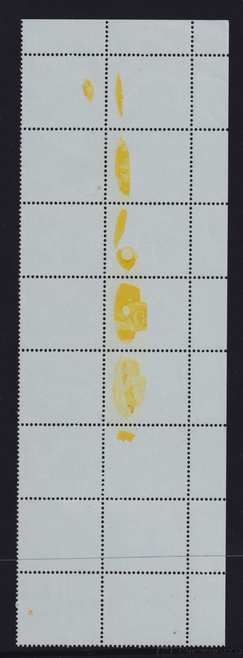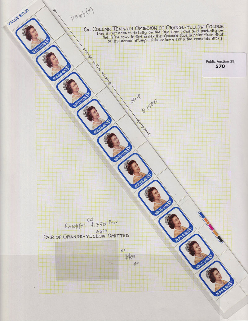 570 ** image1979 10c Queen CP PA10b(T) Right-hand Value Selvedge Vertical Strip of 10 with the first 4 stamps Missing the Orange Colour and partially on the 5th stamp Fine Unhinged. Fine Error Item. CP Cat $2700+ (10) (Image)