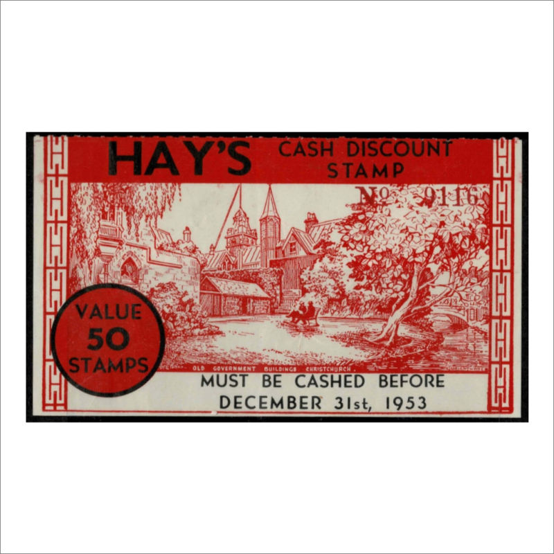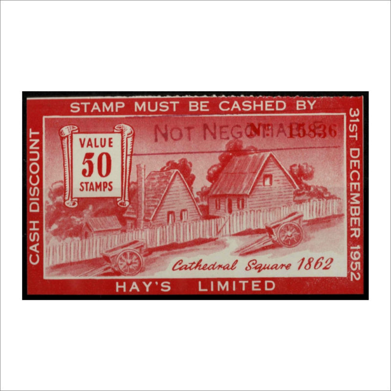 50 Stamps - Cathedral Square 1862 in Red label Heslop Q25 Mint with a ‘Not Negotiable’ handstamp at top. Scarce. Cat $500 (1) (Image)