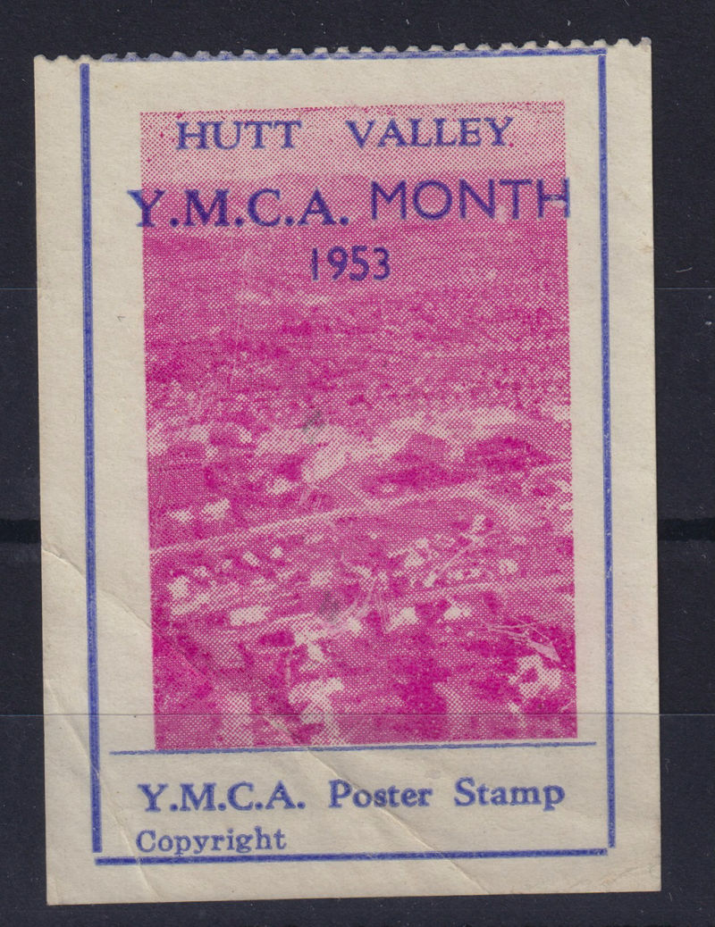 YMCA Month 1953 Poster Stamp Pink/Blue/White label perforated at top Mint No Gum. Very Scarce (1) (Image)
