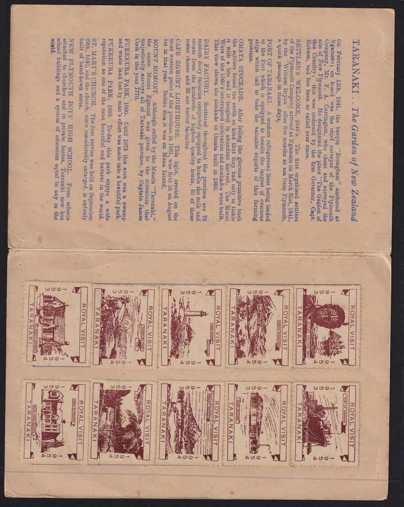 Royal Visit Set of 10 brown labels stuck in Printed Folder. Has light ageeing. Heslop E129. Cat $250 per sheet (10) (Image)