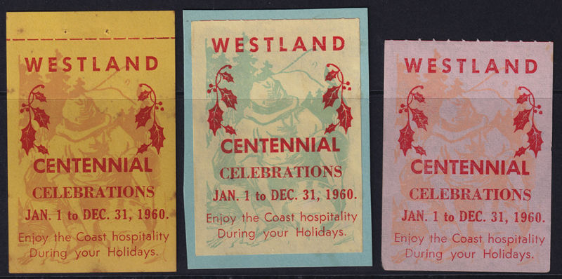 Centennial Celebrations Heslop F52 - 3x Different Rouletted with Deep Yellow & Red, Pale Yellow & Red, Pink & Red. The Pale Yeelow & Red is stuck on card, the Pink & Red Mintt No Gum. Nice Trio (3) (Image)