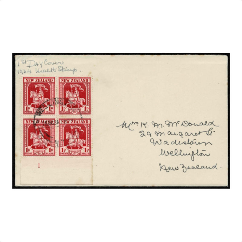SG 555/CP T8a Plate 1 Block of cancelled Wellington 25 OC 34 First Day cancel. Minor perf tone. Very Scarce. ACS Cat $4500 (1) (Image)