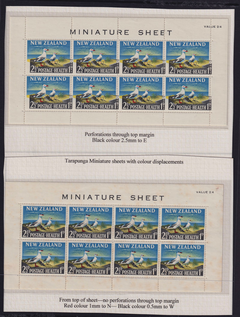 Tarapunga Min Sheet CP TM36a - Two Min Sheets with 1mm Red Colour Colour Shift (the sheet with gum staining) & 2.5mm Grey Colour Shift to the right Both Unhinged (2)
