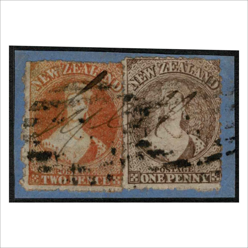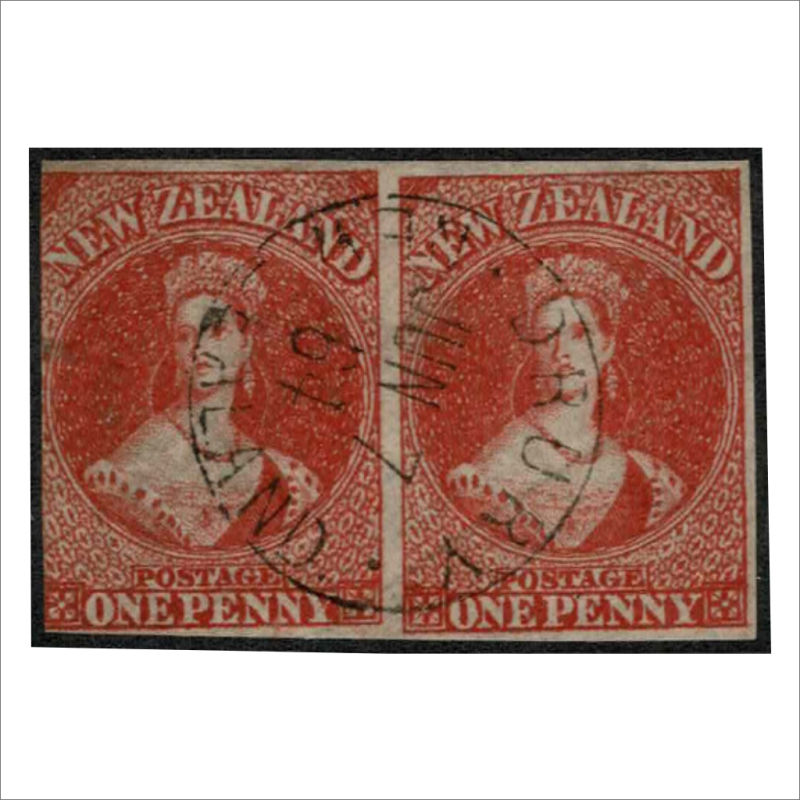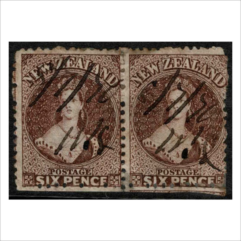 35 Pair with DRURY JUN 7 64 Maori War Period cancel. The left stamp 3 Margins, the right stamp with 4 Margins. Fine Item (2) (Image)