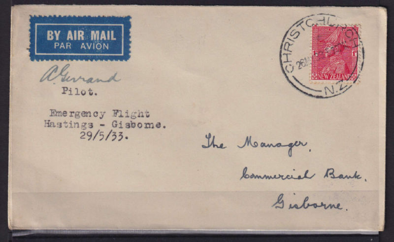 Hawkes Bay Flood Emergency Flight Cover NZAMC 96b on Printed KGV envelope signed by A Gerrand. (1) (Image)