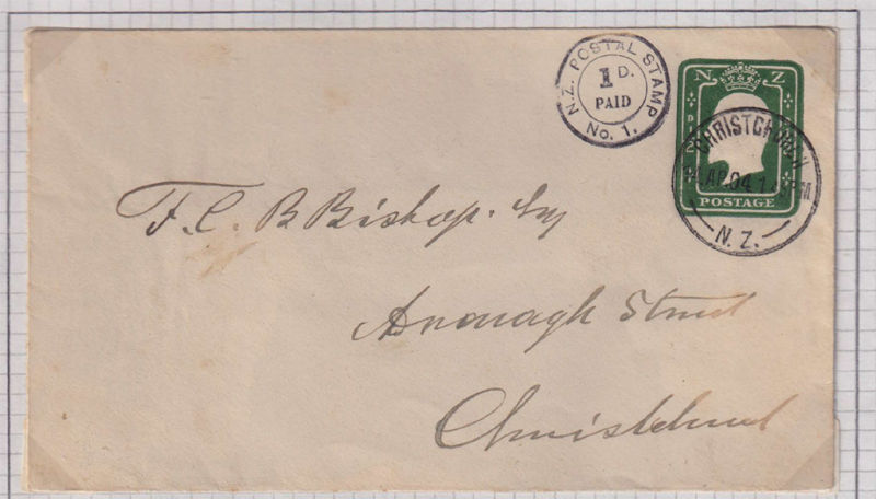 KEVII 1/2d Printed envelope with 1st Trial Moss Franking Machine No 1 Peter Posted at Christchurch. One of Four Covers Franked in Black. Ex Ken McNaught. (See Reference Postage Stamps of NZ Vol 3 Page 432). Very Scarce (1) (Image)
