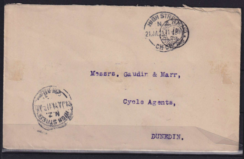 Cover with Black 1d No 28 Moss No 4 Model C Meter tied by High Street/CH.CH cancel to Dunedin. Minor soiling (1) (Image)