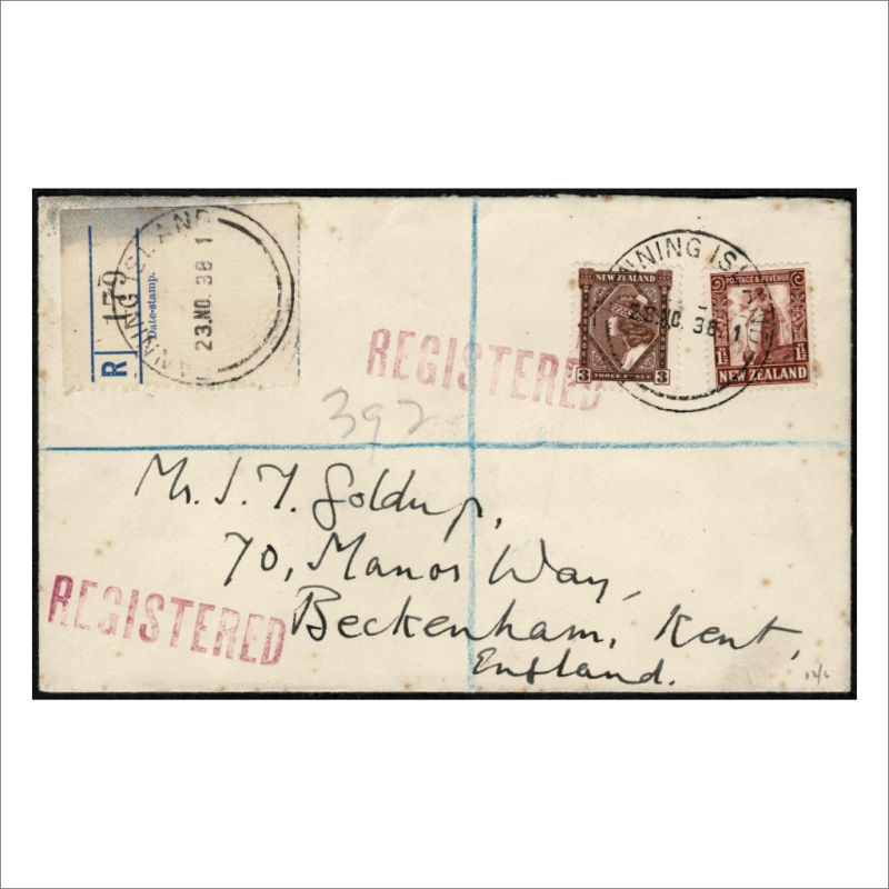 Long Registered Airmail Cover to Melbourne, Australia with KGVI 3d,1/-5/-,10/- Dark Blue (3) making 16/-3d Posted at Holyoak endorsed ‘Via North Atlantic/Trans Pacific Airmail’ Backstamped GPO Sydney/NSW. The cover has Creasing & Faults at left (1) (Image)