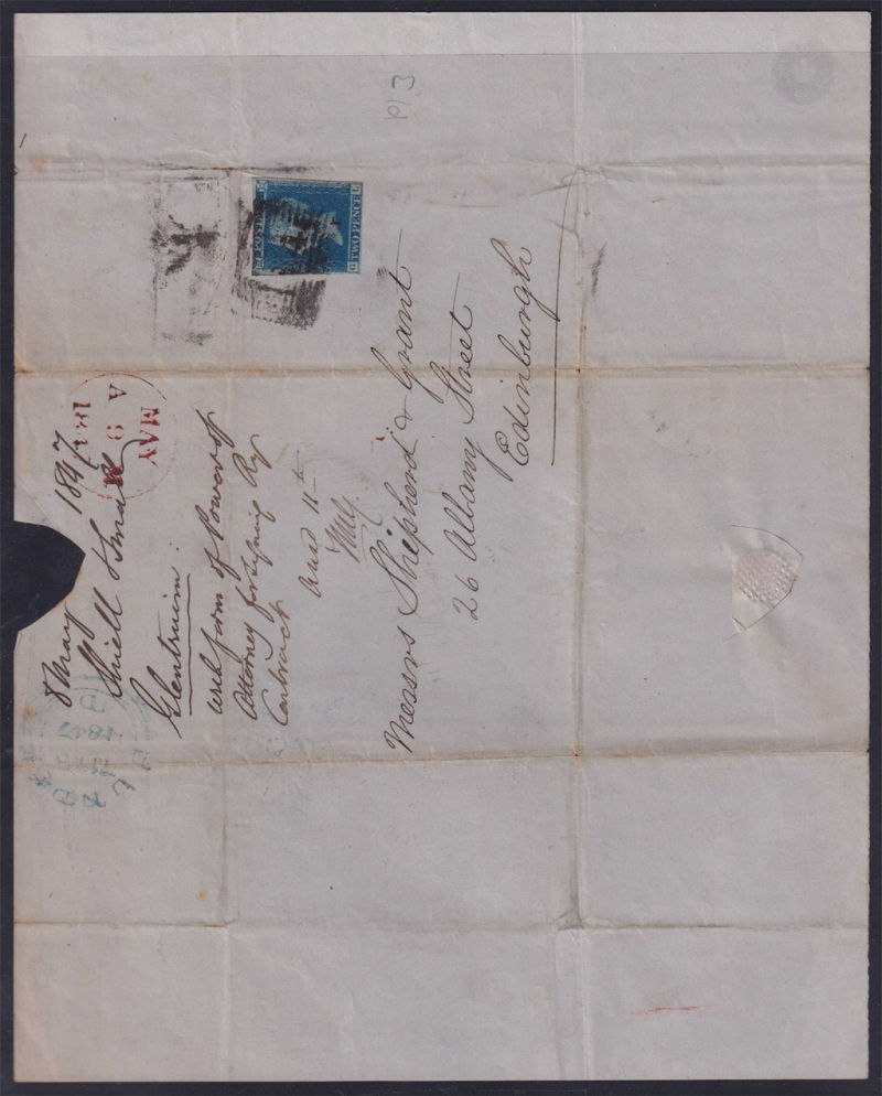 Outer Wrapper with QV 2d Blue Imperf tied to Edinburgh. Has Dundee blue cancel. (1) (Image)