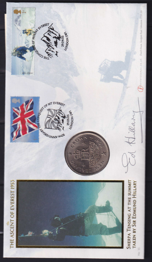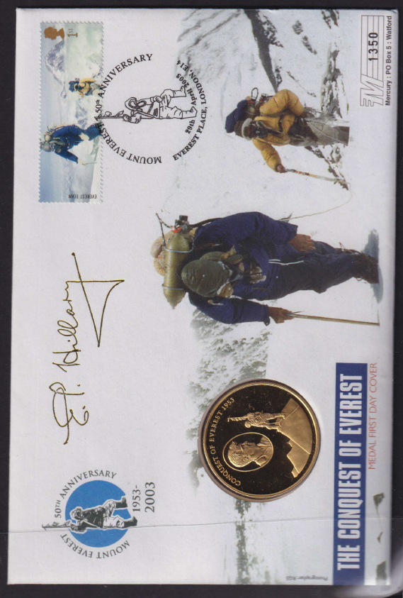 The Conquest of Everest Printed Medal First Day Cover with a Special cancel & Facsimile EP Hillary Signature (1) (Image)