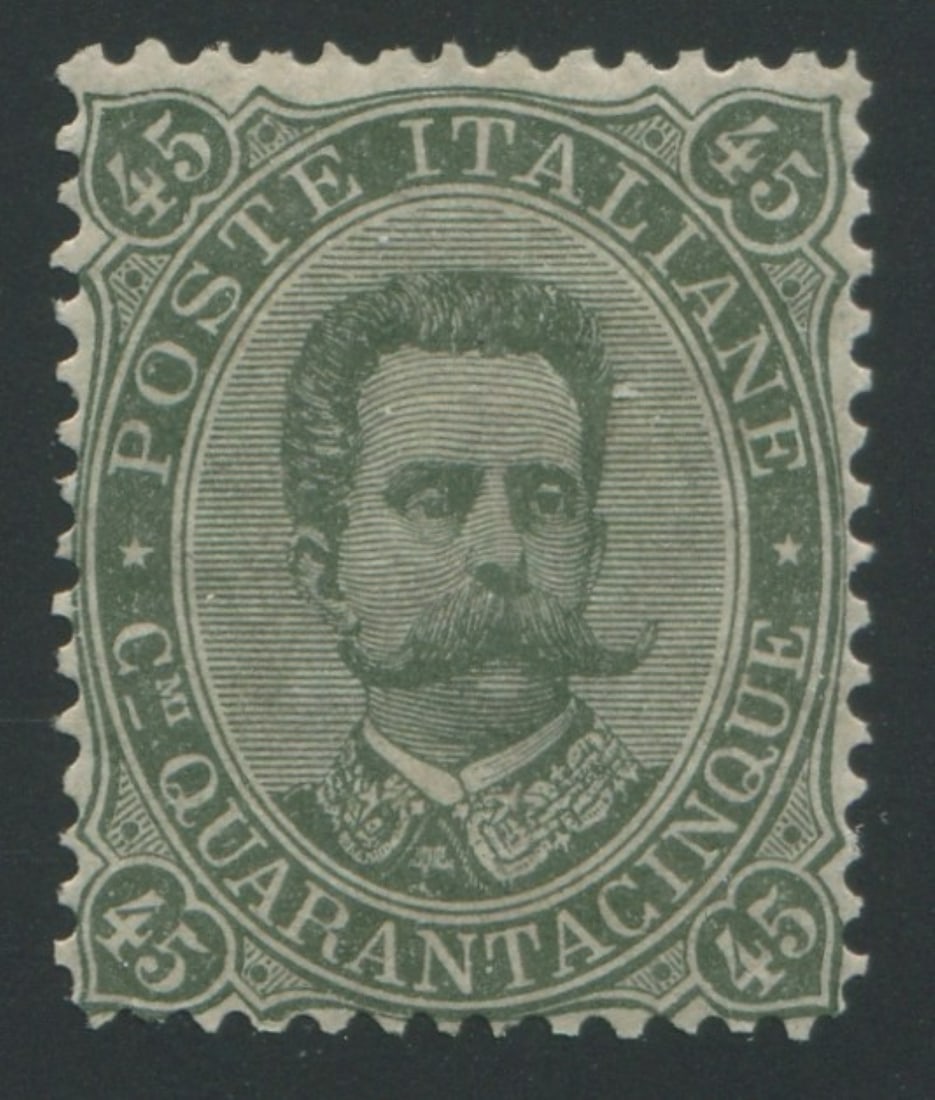 Italy 1889 #54, a MLH 45c gray green, Scott value $2350, appears f-vf (Image 1)