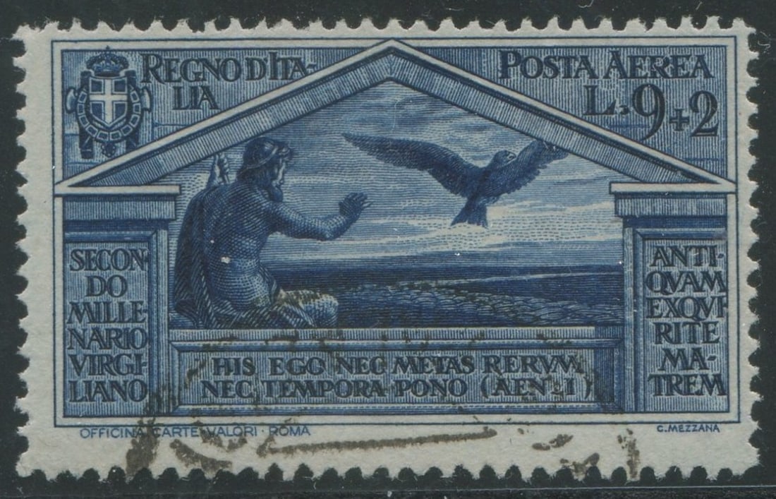 Italy - Air Post Stamps, 1930, #C26, 9+2 L indigo used Scott value $600, appears f-vf (Image 1)
