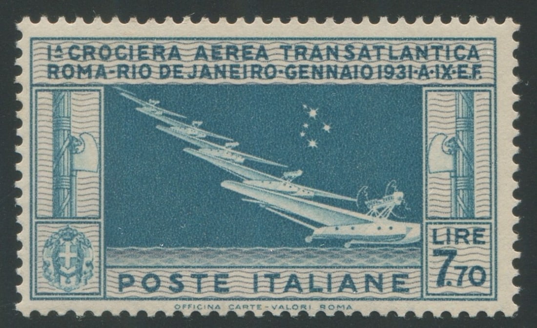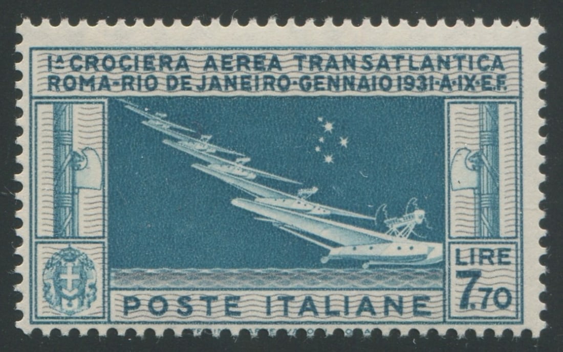 Italy - Air Post 1930 #27, a MNH 7.70I pruis blue and grey, Scott value $900, appears f-vf (Image 1)