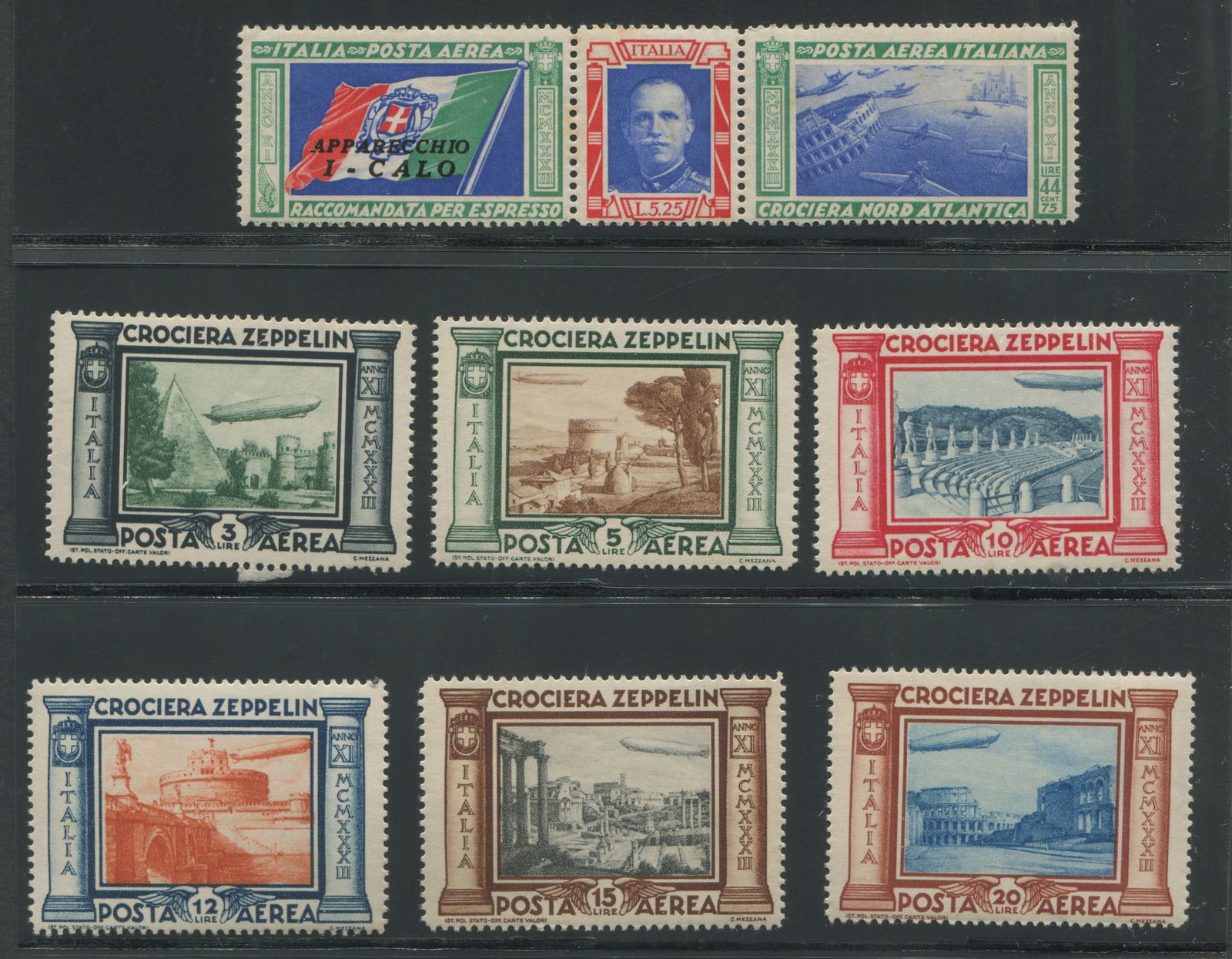 Italy - Air Post 1933 #C42 / #C49, a MNH complete set C42 -C48 and a MH C49 Scott value $455, appears f-vf (Image 1)
