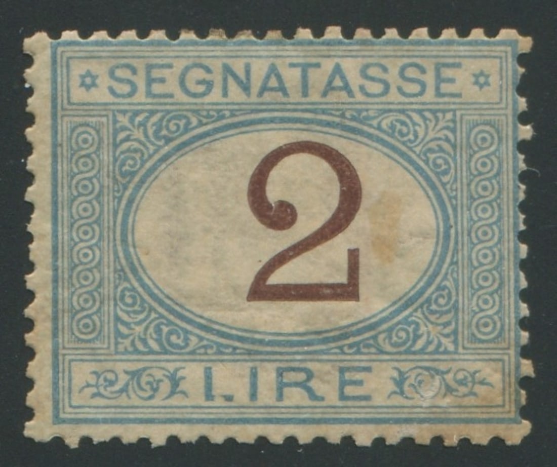Italy - Postage Due #J15, a MH 2I blue and brown, Scott value $7250, tropical and disturbed gum, appears f-vf (Image 1)