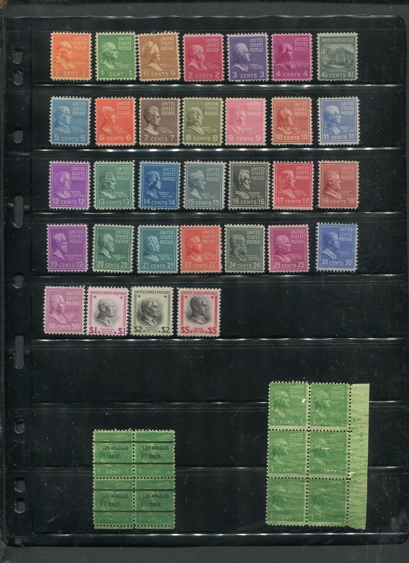USA 1938 #803 /#834, a MNH complete set of 32 plus #804 a block of four pre-cancel and a block of six regular both with ink smuding, Scott value $550+appears f-vf (Image 1)