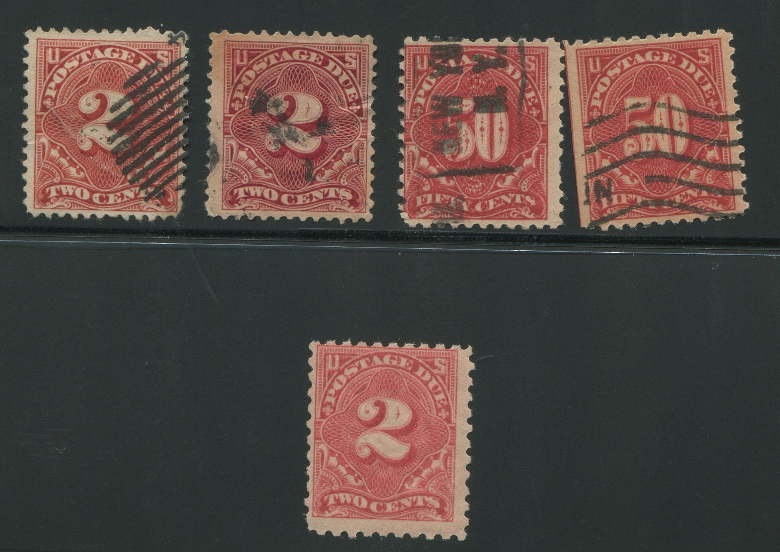 USA - Postage Dues 1894 - 1916, a group of 5 stamps, includes #J30 x2 used, #J37 x 2 used and #J60 2c rose perf 10 MH, Scott value $2550, appears f-vf (Image 1)