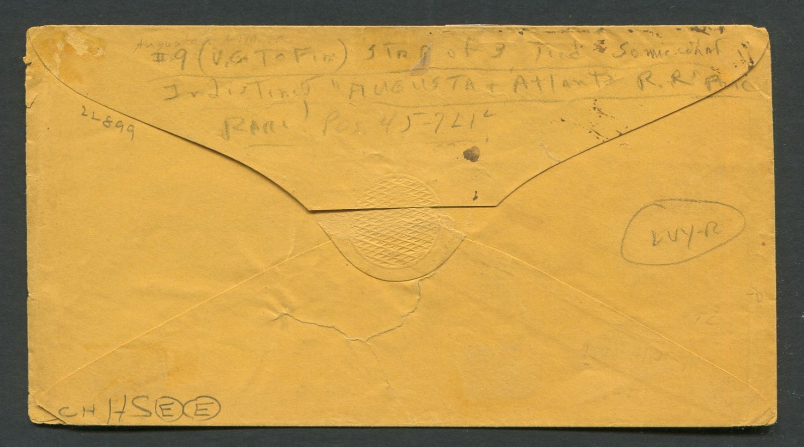 USA 1851 - 1857 #9 1c blue used strip of three, tied by Augusta and Atlanta R-R cancels, on cover to Eatonton, GA, appears f-vf (Image