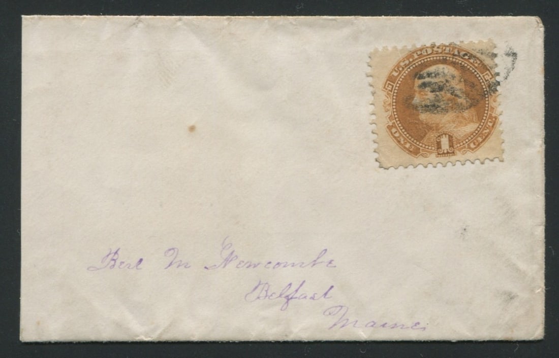 USA 1869, #112, a 1c buff tied on a miniature size cover, addressed to Belfast, Maine, appear f-vf (Image 1)