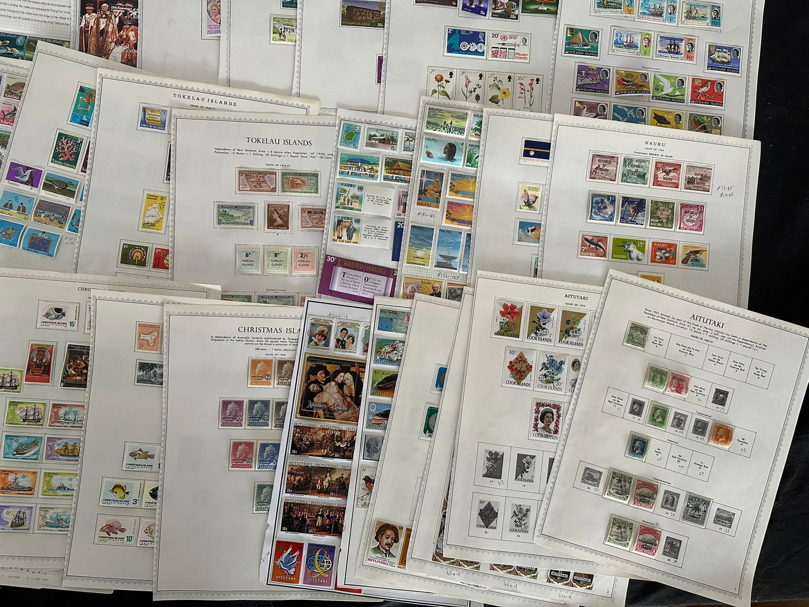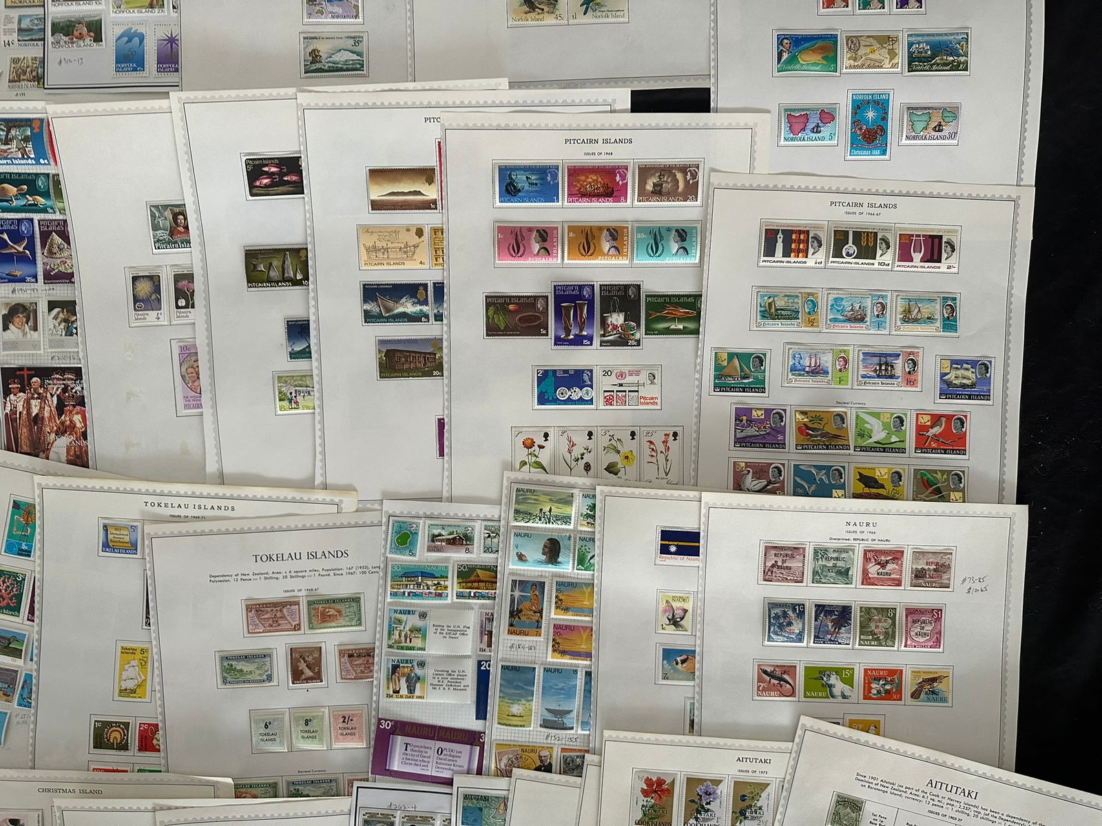 923 imageBritish South Pacific Countries, 1882 - 1979,a MH and used collection on leaves, includes, Aitutaki, Christmas Islands, Cocos Islands, Nauru, New Gunea, New Zealand, Norfolk Islands, Penrhyn Island, Pitcairn island, Ross Depedency, Tokelau Islands, Scott value $1748, Appears f-vf (Image 1) (Image 2) (Image 3) (Image 4) (Image 5) (Image 6) (Image 7)