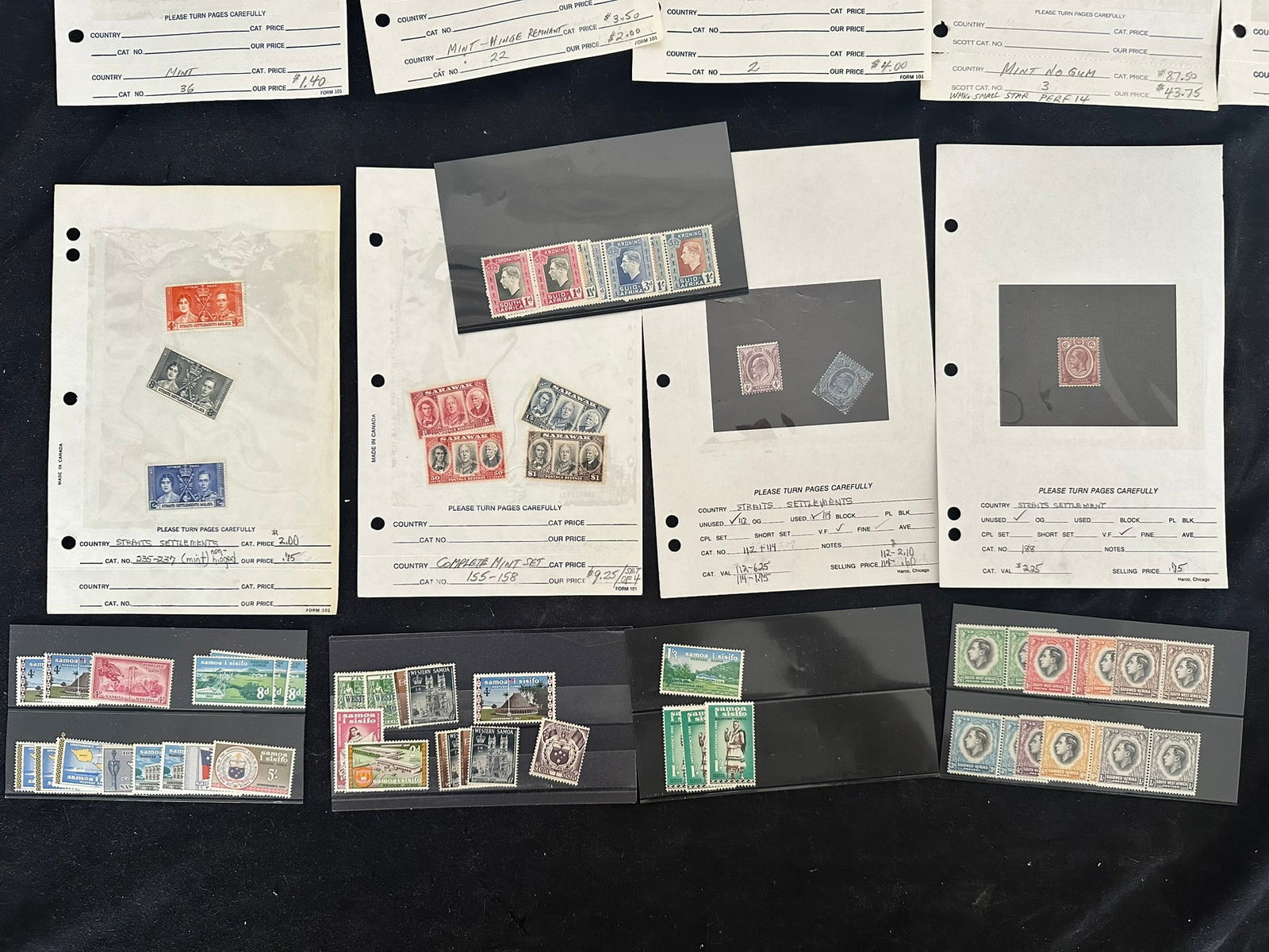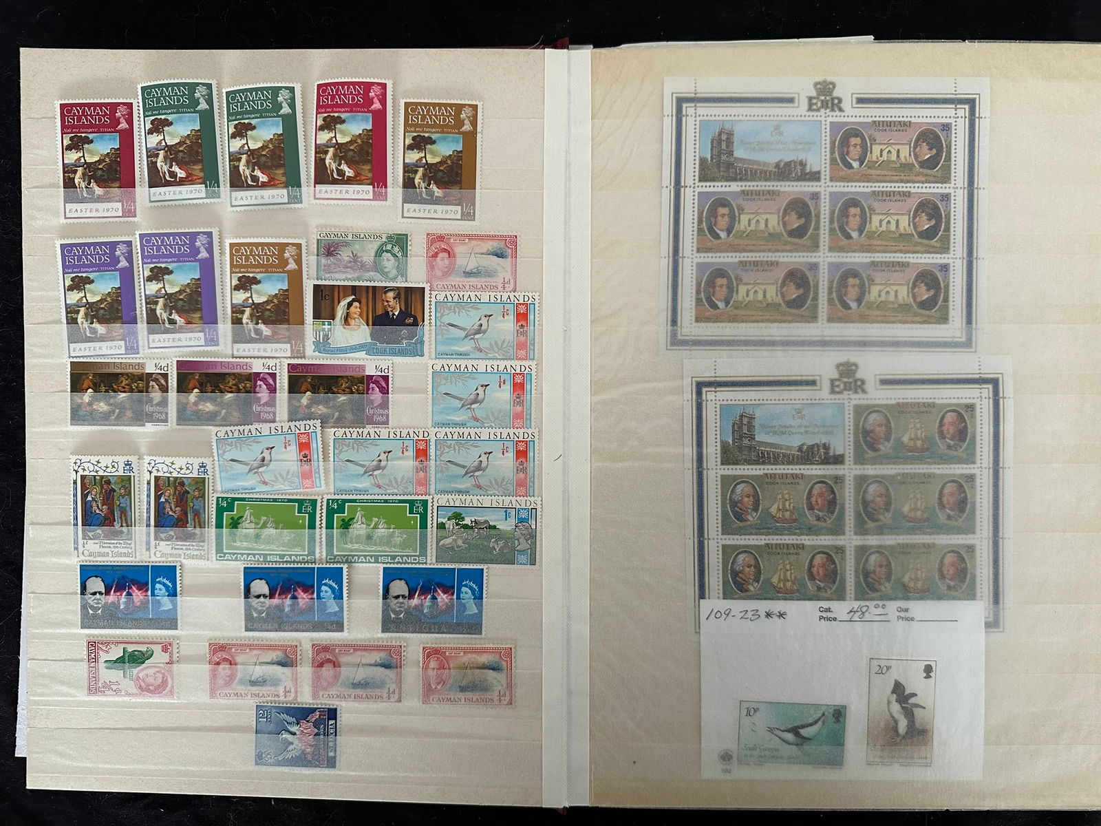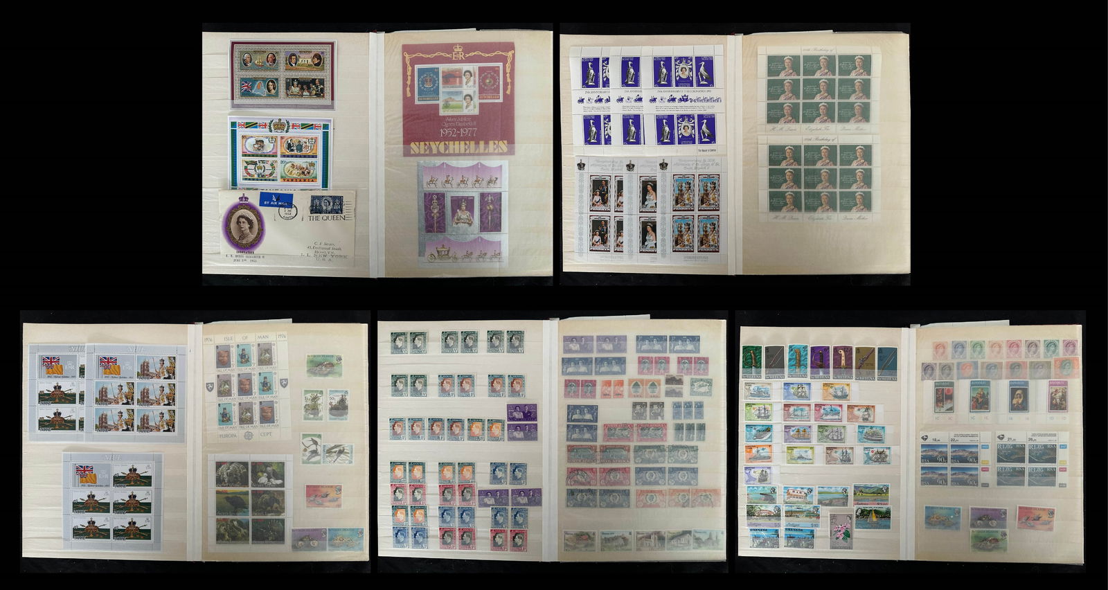 924 imageBritish Commonwealth collection in Stock book, Many Countries, and many Mint NH, 1050+ stamps, Est. Cat. $750.00, Gibraltar #29-38 (no 31A), mint* f-vf, Cat.$260.00, Bermuda GV, GVI and QEII, #127 revenue cancel, FDC QE 25th Anniversary of Coronation, Antigua 1970 ship issue multiples, Saint Lucia, 48 1953 Omni bus Coronation Issue, British Virgin Islands, including #520-523 Gutter pairs, Morocco Agencies overprints on Edward VIII GB issues in blocks, Aden up to 10 /-, Saint Kitts- Nevis FDC GVI, Cook Islands, Malta incl. Postage Due, Cayman Islands, 3 Aitutaki Souvenir sheets, GB Coronation QE FDC 1/-6 Long Live the Queen cancel, Various Silver Jubilee issues, Queen Mother 80th mini-sheets Gibraltar, Niue, Sierra Leone , Isle of Man, Suid-South Africa pairs GVI Coronation, GV Silver Jubillee, Christmas Islands, Rhodesia & Nyasaland QEII 1/2d - 10/-, Gilbert & Ellice Islands Dominica Souvenir sheets, Turks & Caicos #506 in full sheet of 40 Tete-Beche with Gutter, 1 fold, Ghana 1 sheet of 50 1357A & 1 sheet 1357E. An interesting mixed lot, certaqinly worth the estimate. (Image 1) (Image 2) (Image 3) (Image 4) (Image 5) (Image 6) (Image 7) (Image 8) (Image 9) (Image 10)